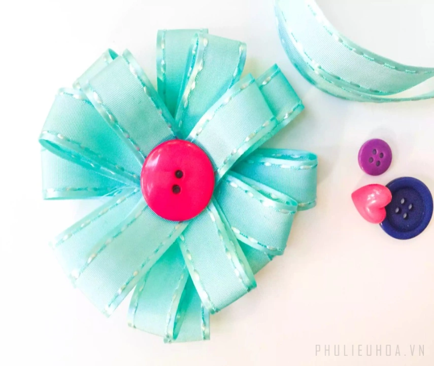 Thêm một (hoặc hai) nút bổ sung vào giữa bông hoa ruy băng để làm nhụy hoa.