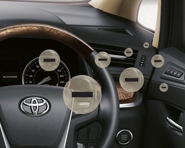 Mẫu Alphard Toyota có vô lăng bọc da, thiết kế 4 chấu, được tích hợp các chức năng sưởi, điều chỉnh đa hướng. Đồng thời, bên trên vô lăng còn đi kèm theo các nút chức năng như đàm thoại rảnh tay, điều chỉnh màn hình thông tin, điều khiển hành trình cruise control thuận tiện cho người cầm lái.