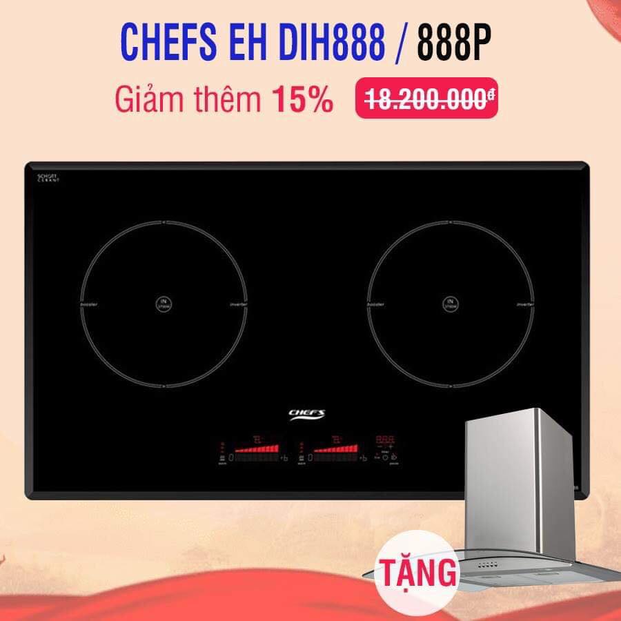 Không cần phải giới thiệu quá nhiều về mẫu bếp từ Chefs EH DIH888 thì chắc mọi người cũng đã biết về sản phẩm này. Đây được coi là "gương mặt thương hiệu" của Chefs trong năm 2018, chỉ cần nhắc tới Chefs là người dùng nghĩ ngay đến mẫu bếp DIH888 và ngược lại. Bếp nhập khẩu nguyên chiếc tại Đức, kiểm tra và đóng gọi tại Đức về Việt Nam. Bếp hiện được bán với giá 15.500.000Đ, tặng kèm một bộ nồi hoặc một chiếc máy hút mùi Chefs.