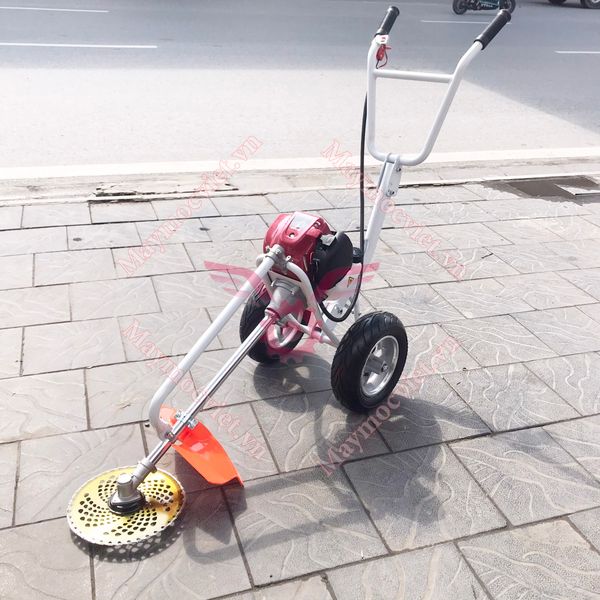 Máy cắt cỏ đẩy tay Okasu GX35 có 2 tay cầm, bánh xe to, trọng lượng nhẹ chỉ có 14kg giúp người dùng dễ di chuyển máy tới các địa hình khác nhau, giảm trọng lượng mang vác cho người sử dụng như các dòng máy đeo vai thông thường.