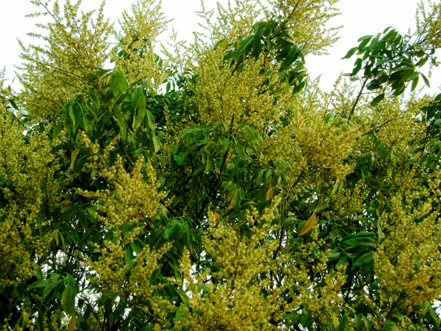 Cây nhãn: Cây nhãn sở hữu kích thước nhàng nhàng tới to, thường cao từ 10 tới 28 mét. Lá cây dày, màu xanh bóng, thường mọc theo cụm.