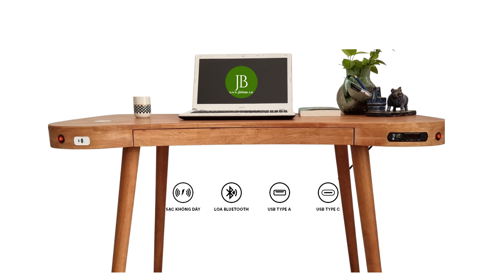 Bàn Làm Việc JBFam Tích Hợp Sạc Không Dây, Loa Bluetooth, Sạc USB Type A và Type C.