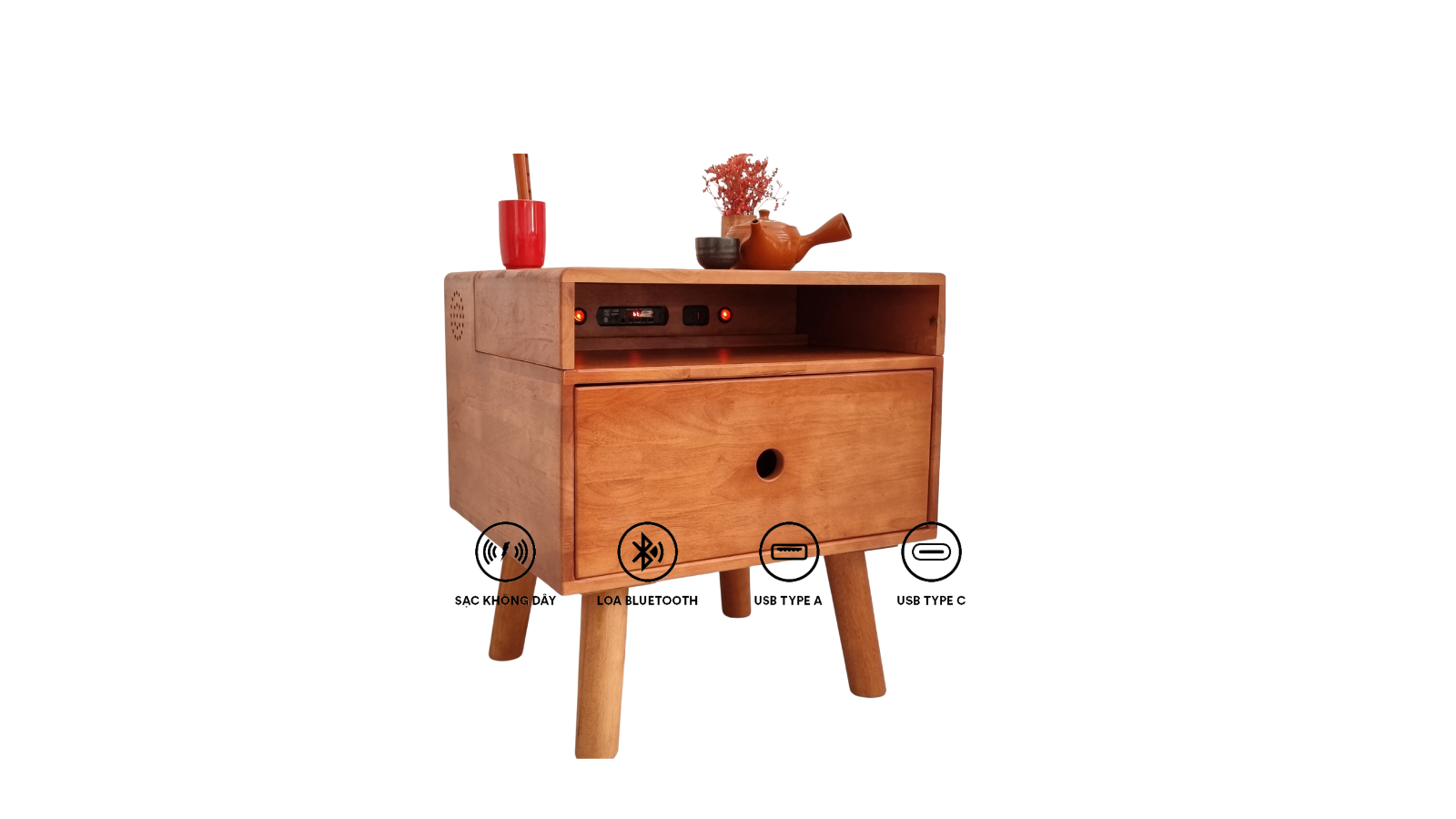 + Các sản phẩm nội thất thông minh đa năng tích hợp công nghệ như sạc không dây, loa Bluetooth, sạc USB, sạc type C, đèn led, trợ lý ảo, ổ cắm thông minh, công tắc cảm biến,...