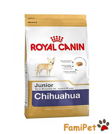 Thức Ăn Cho Chó Royal Canin Chihuahua Junior được sản xuất dành riêng cho những chú chó Chihuahua nhỏ từ 8 tuần cho đến 10 tháng tuổi. Loài chó này có kích thước miệng khá bé. Vì vậy nếu ăn những loại thức ăn không phù hợp chúng sẽ rất dễ bị mắc bệnh răng miệng. Những viên Royal Canin Chihuahua Junior được thiết kế theo hình dạng khối nhỏ. Nó rất phù hợp với loài chó Chihuahua này. Những hàm lượng chất dinh dưỡng có trong thức ăn cũng sẽ giúp phòng chống đáng kể bệnh răng miệng.