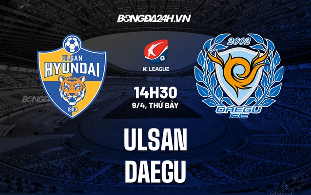 Ulsan vs Daegu VĐQG Hàn Quốc 2022 lúc 14h30 ngày 9/4: Nhận định bóng đá, ý kiến chuyên gia, dự đoán kết quả, phân tích chuyên môn, các thông tin tỷ lệ bóng đá, thống kê bên lề trước trận đấu.