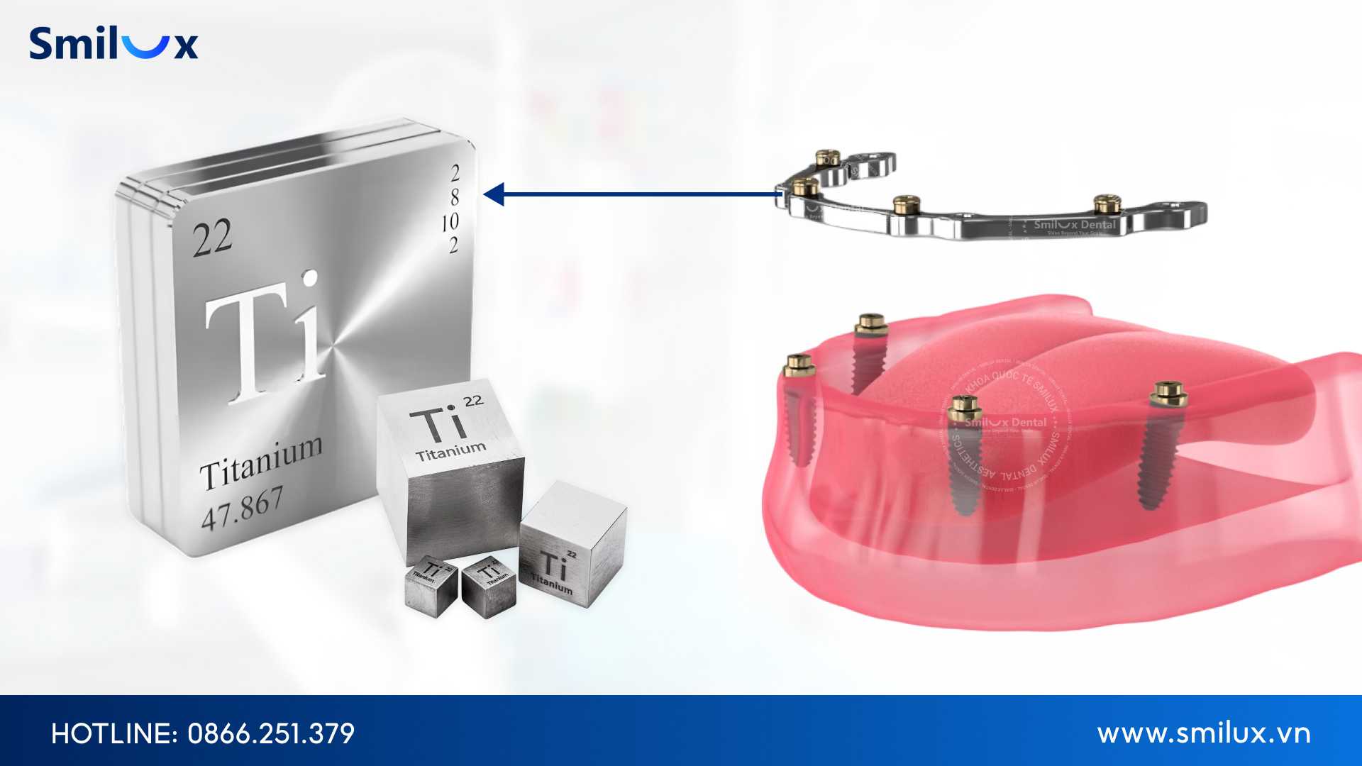 - Thanh bar (cầu nối cố định) này được thiết kế riêng biệt cho từng bệnh nhân. Nó có nhiệm vụ kết nối tất cả các trụ Implant lại với nhau thành một khối thống nhất.