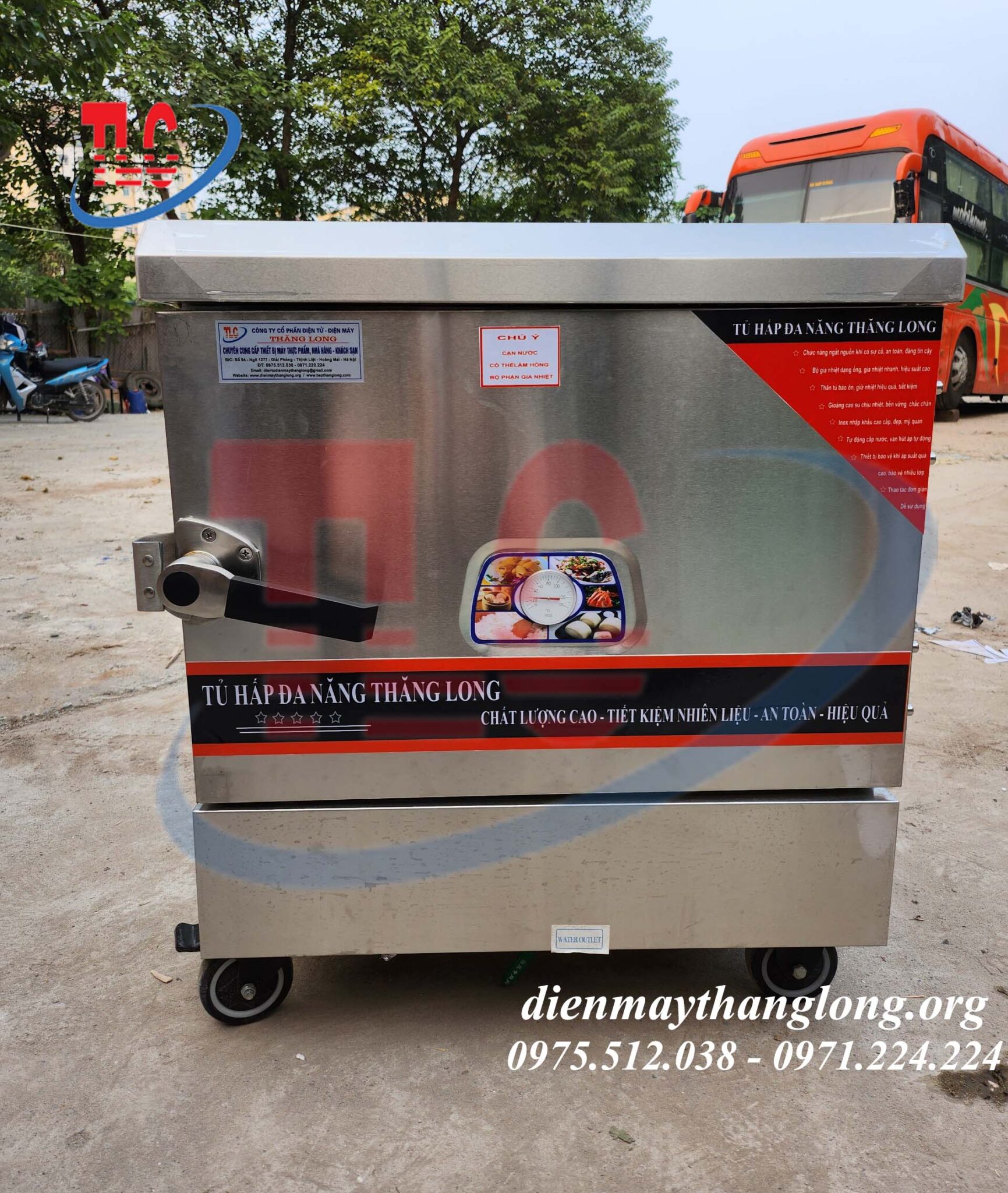 Các đơn vị chuyên nấu cỗ hội nghị, đám cưới, tiệc lưu động thường phải di chuyển thiết bị theo từng đơn hàng. Với thiết kế bánh xe như trên hình, tủ dễ dàng vận chuyển đến địa điểm tổ chức. Tủ giúp nấu cơm nhanh, giữ cơm nóng lâu, giảm tối đa sự cố như cơm sống hoặc cơm nát—những vấn đề dễ gặp khi nấu bằng nồi nhôm thông thường.