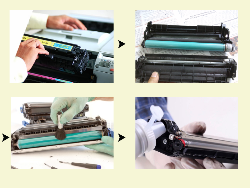 - Chổi mềm hoặc máy hút bụi mini để làm sạch hộp mực.