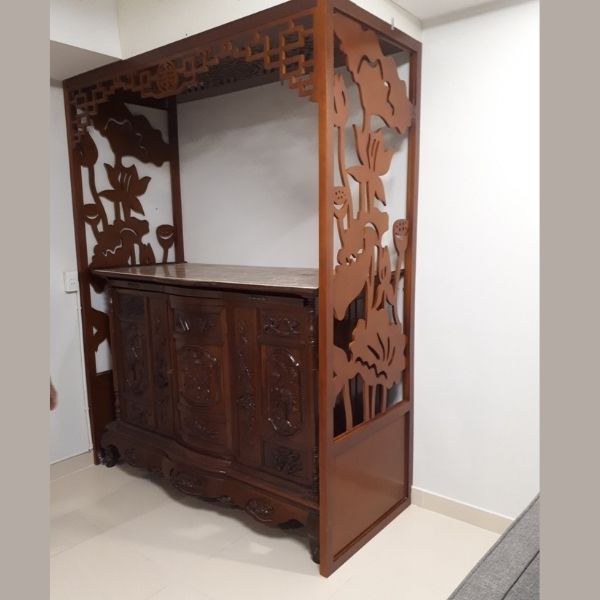 2.Tấm vách ngăn bàn thờ với họa tiết hoa sen